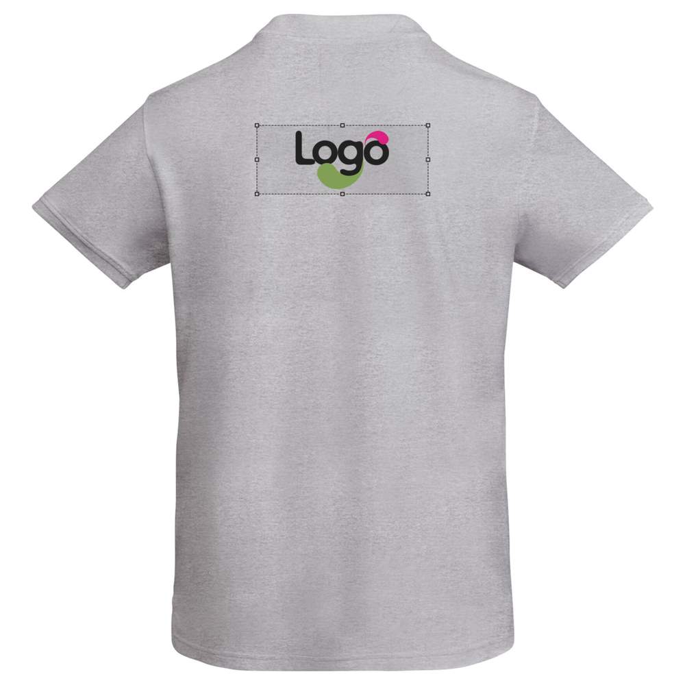 Short-sleeved organic cotton ROLY ECO polo. Ribbed collar and sleeve finishes. Two-button placket. Reinforced covered seams at the collar. Side slits on the hem. Detachable label. Duo concept. Organic fabric. Composition: Solid colors: 100% organic cotton, (except for color heather gray: 85% organic cotton, 15% viscose). Possibility of customization by embroidery or printing for a unique and professional result.
