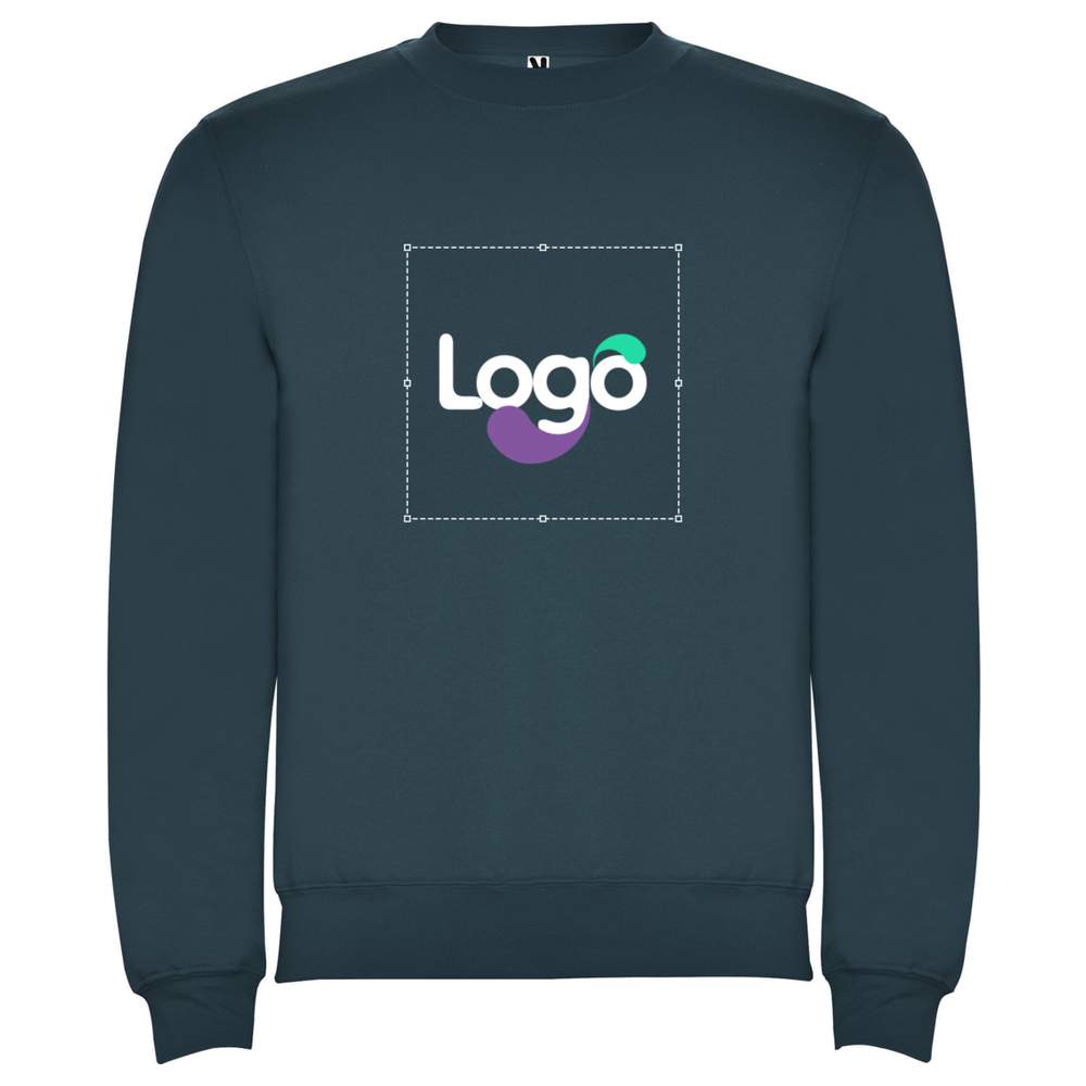 ROLY Clasica Crew Neck Sweatshirt. Collar, cuffs and waistband in ribbing 1x1 with elastane. Neckline band. Removable label. Available in children's sizes. Composition: 50% cotton, 50% polyester (except heather gray color: 55% cotton, 40% polyester, 5% viscose), fleece knit. Customization possibility with embroidery.