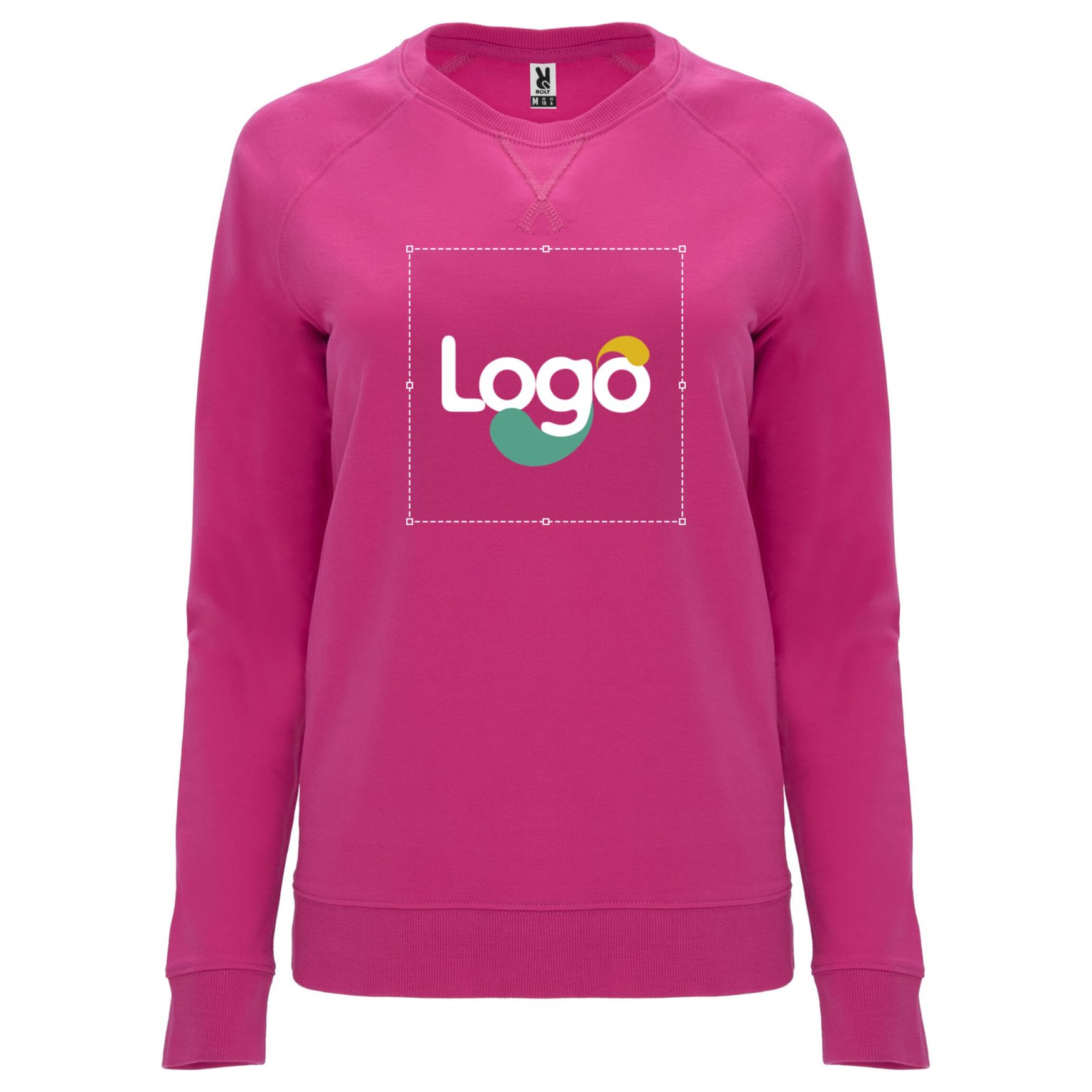 Women's long-sleeve raglan cotton sweatshirt. Ribbed collar, cuffs, and waistband. Round collar with reinforced inner ribbed band. Centered detail of crossed seams with ribbing. Detachable label. Duo concept. Composition: 100% cotton (except heather gray: 85% cotton, 15% viscose), unbrushed fleece knit. This sweatshirt is customizable with embroidery for effective brand communication.