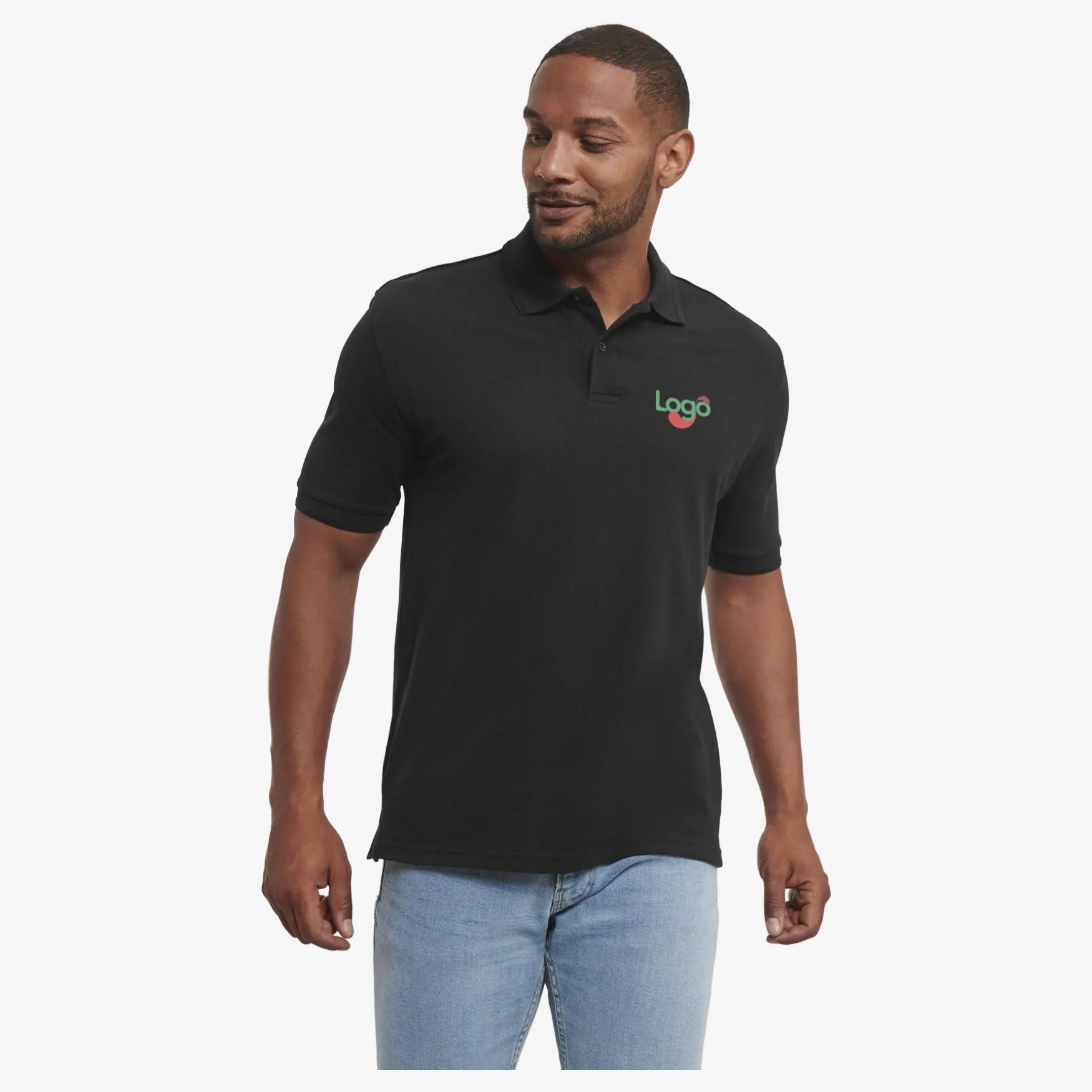 The polo piqué 65% polyester and 35% ringspun cotton features a double-fold effect collar and matching sleeve edges. It includes a neck tape, reinforced shoulder seams, a two button placket with tone-on-tone buttons, double stitching at the base, and side vents. This model is customizable.
