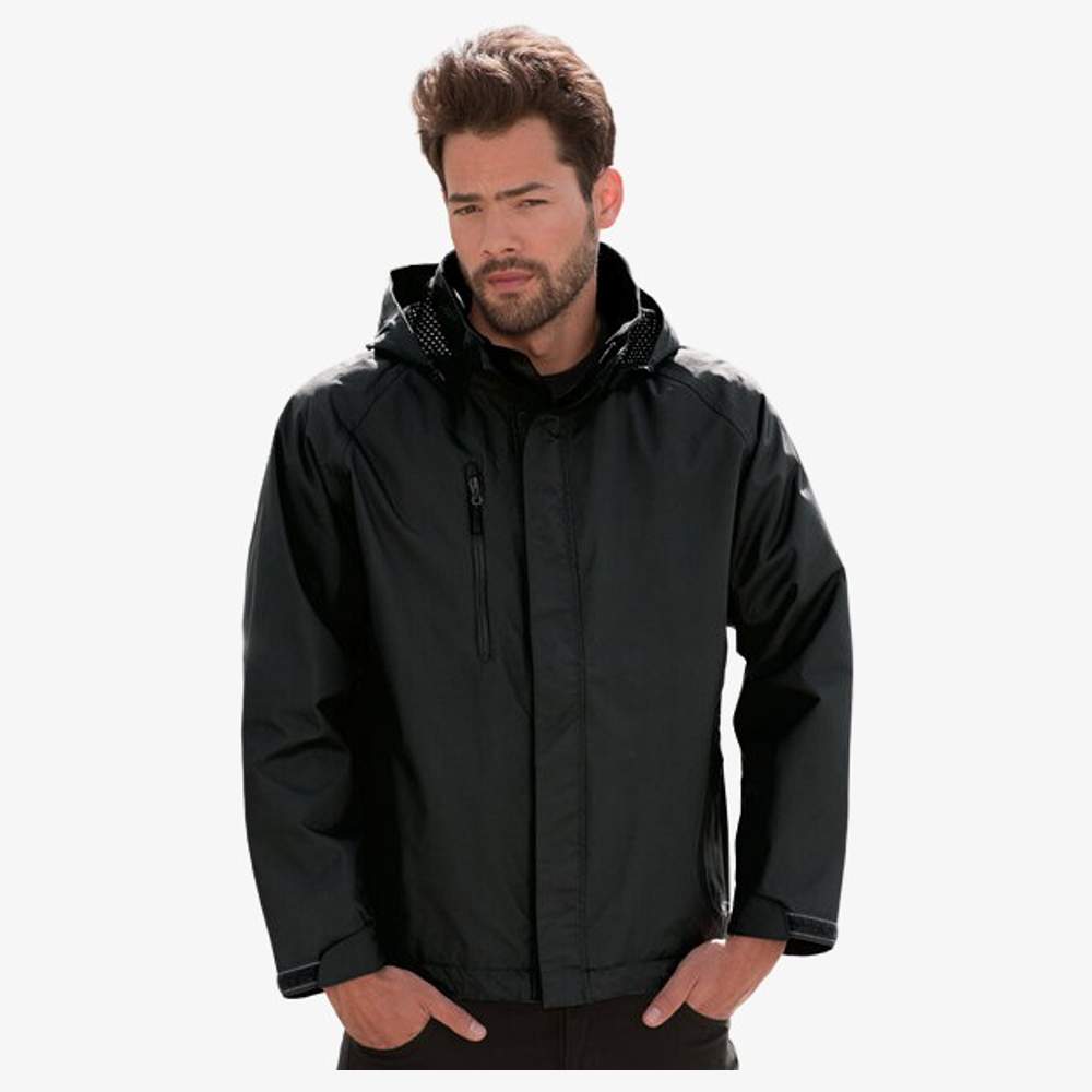 The RUSSELL Hydraplus 2000 jacket offers optimal protection against bad weather thanks to its waterproof and breathable design. Suitable for outdoor activities, it features articulated elbows, raglan sleeves, and a foldable hood for increased freedom of movement. The zippered handwarmer pockets and the interior pocket for a phone provide practical and secure storage. The flap closure and inverted zippers ensure additional protection against the elements. The soft-to-the-touch inner collar provides optimal comfort. The jacket is fully lined and has access for customization with embroidery, allowing you to add your logo or your visual. Waterproof material at 2000 mm and breathability of 2000 per 24 hours.