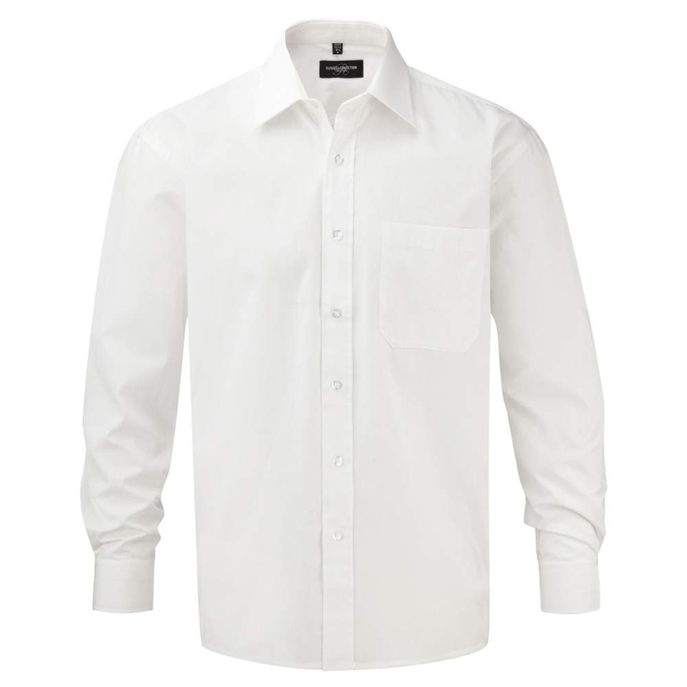 Long sleeve shirt made of 100% cotton poplin, offering optimal comfort and a neat appearance. Its design ensures easy maintenance and reduces the need for ironing. It features seven buttons of the same color, a chest pocket on the left side, and two pleats in the back for better freedom of movement. The rounded cuffs have two buttons, and the collar points are reinforced with whalebone, providing a durable structure and a classic Kent style. This shirt combines comfort, elegance, and practicality to meet daily needs.