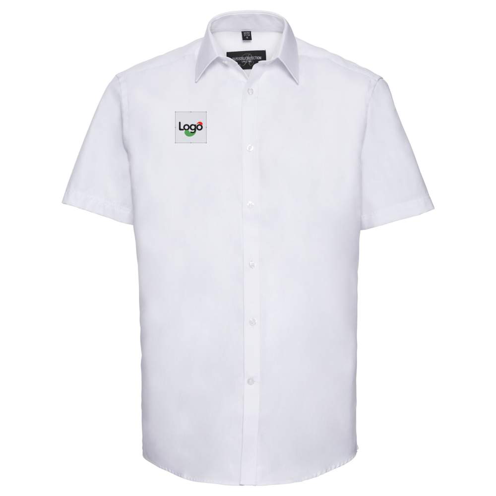 This short sleeve shirt offers optimal comfort thanks to its cotton and polyester composition. Its tailored fit and semi-spread collar give it a neat and elegant appearance. It stands out with its subtle herringbone pattern and easy care. Ideal for professional or casual outfits, it adapts to all styles. The customization option with embroidery allows you to add your logo or a visual of your choice for a unique brand image.