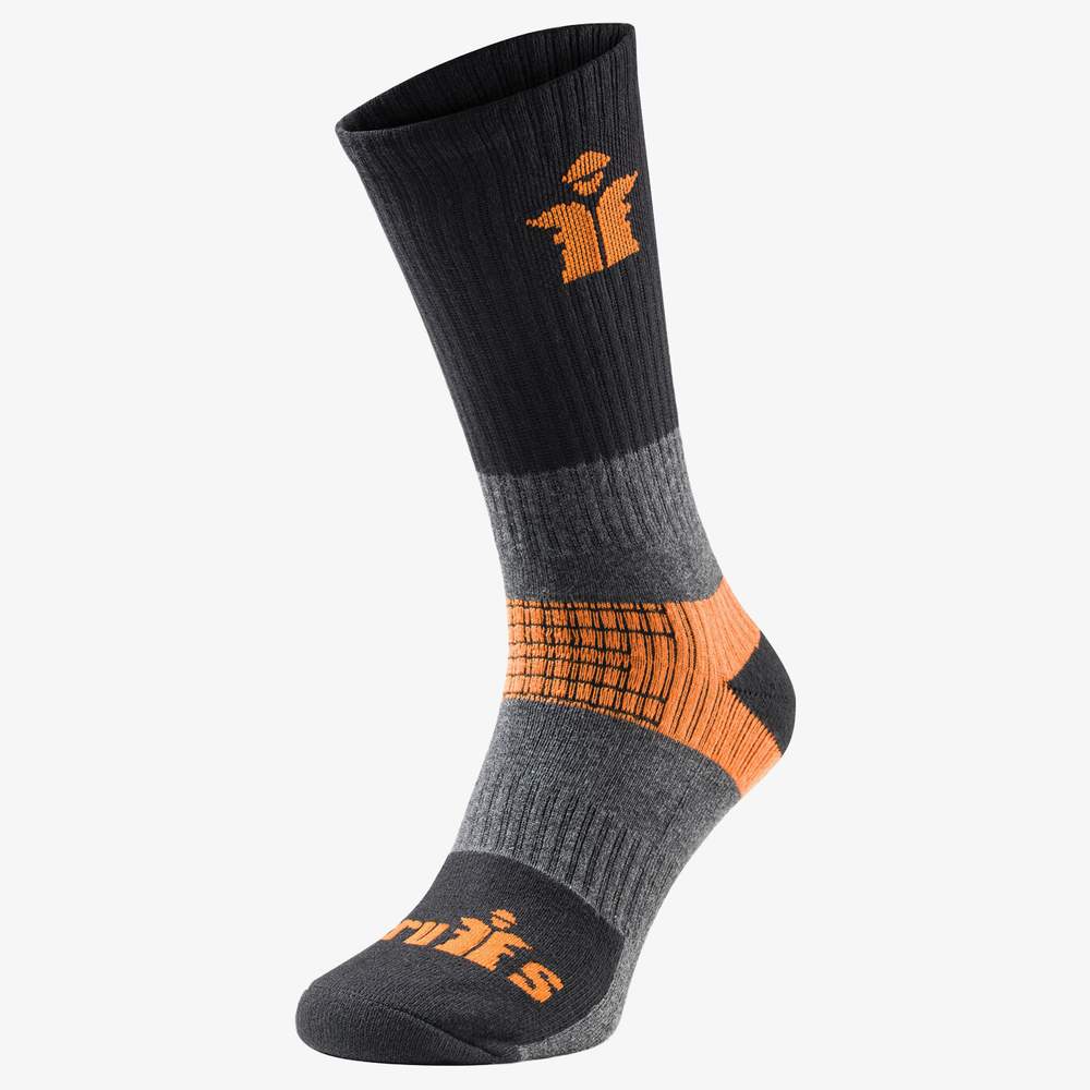 These work socks are designed to provide comfort and durability during demanding professional activities. They include a padded sole, heel, and toe to enhance comfort during prolonged use. The reinforced construction at the wear points helps extend the life of the socks, even in harsh conditions. The arch support provides additional support for tasks that require standing or walking for long periods.