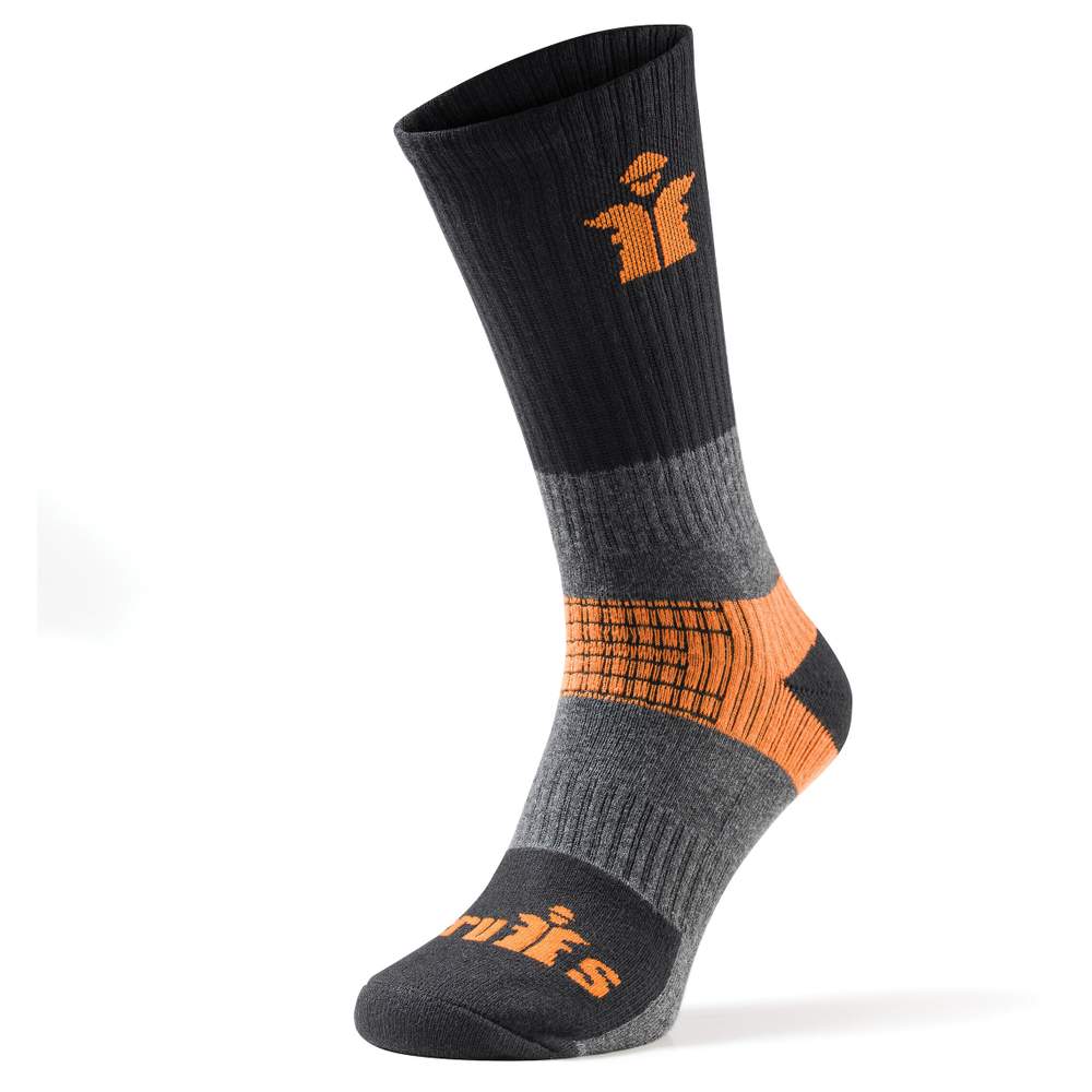 These work socks are designed to provide comfort and durability during demanding professional activities. They include a padded sole, heel, and toe to enhance comfort during prolonged use. The reinforced construction at the wear points helps extend the life of the socks, even in harsh conditions. The arch support provides additional support for tasks that require standing or walking for long periods.