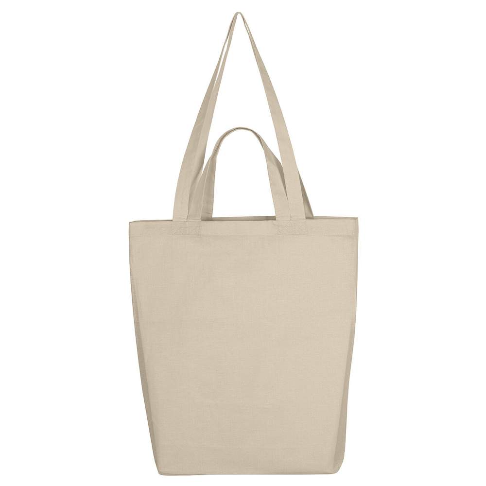 This shopping tote is designed for versatility and durability. It features both short and long straps, offering different carrying options. Cross-stitching on the handles reinforces its robustness. Its spacious dimensions allow you to carry all your personal belongings with ease.