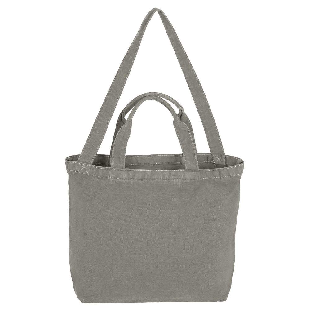 This cotton canvas tote features a vintage style and washed finish. It is equipped with a zip closure and a long handle for shoulder carry. An inner pocket provides additional storage space, while contrasting stitching adds a touch of style.