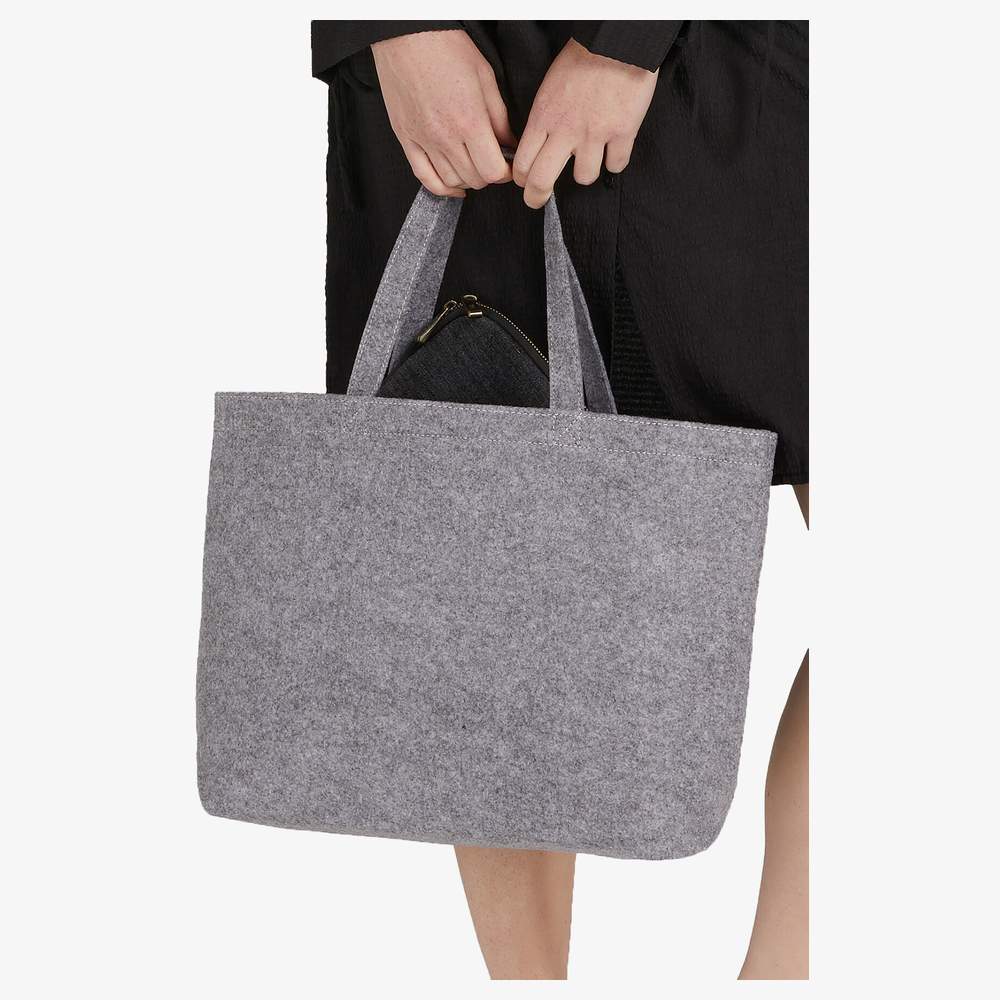 This large shopper offers practical storage space for groceries or daily commutes. It features short handles for comfortable hand carrying. An interior pocket helps organize small items. The hook-and-loop closure ensures the contents are secure. Its generous dimensions allow for carrying various articles. Composition: 100% polyester (felt) Dimensions: 46 x 31 x 12 cm Handles: 43 cm Interior pocket: 14 x 15 cm