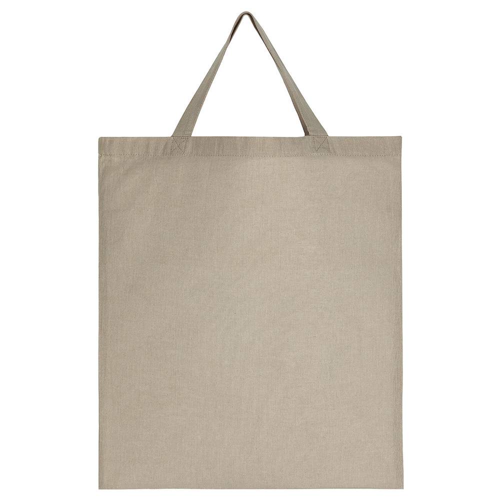 This recycled cotton polyester shopping bag offers an eco-friendly alternative for transporting your personal belongings. Designed for daily use, it combines durability and environmental respect. Its dimensions of 38 x 42 cm make it a practical bag for shopping or travel. The short handles, approximately 35 cm, ensure a comfortable and secure grip. The interior seams reinforced with an overlock stitch contribute to the bag's strength.