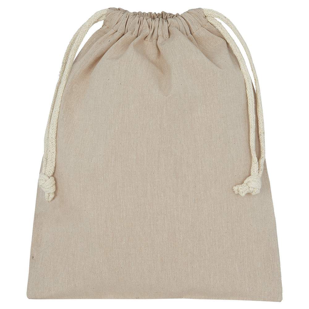 These handy recycled fabric storage bags with a drawstring can help keep things organized, and sustainably. Side seams with overlock stitching inside.