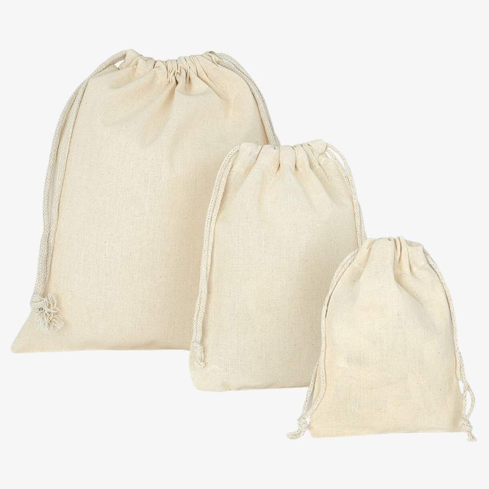 Keeping things organized is often a challenge, but these practical cotton bags with drawstrings will help you keep things in order. From the small jewelry pouch to the large laundry bag, you have a choice of 8 different sizes. Ideal for packing, sorting, wrapping... From the hotel to the home, from the shop to travel: make sure your belongings are always where you need them.