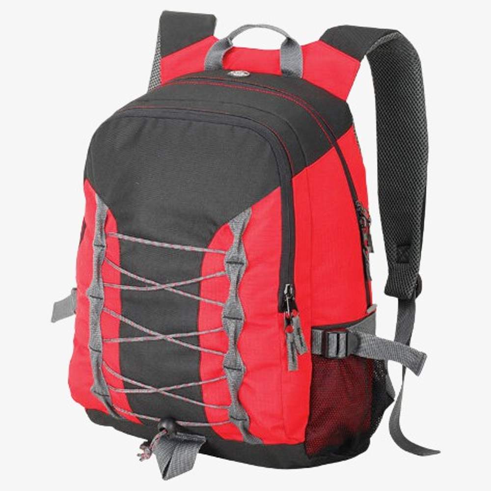Backpack offering two distinct compartments for organizing content. The main compartment includes an internal pocket designed to accommodate an MP3 player or iPod, as well as a pass-through for guiding the headphone cable. The front compartment offers specific storage for pens and phone. Two mesh side pockets allow for carrying bottles. A drawstring at the front secures additional items. The shoulder straps are padded and adjustable for comfortable carrying. This backpack is designed to be personalized with screen printing, transfer, or embroidery. Material: 600D Ripstop Polyester. Dimensions: 43 x 30 x 22 cm. Capacity: 26 liters.