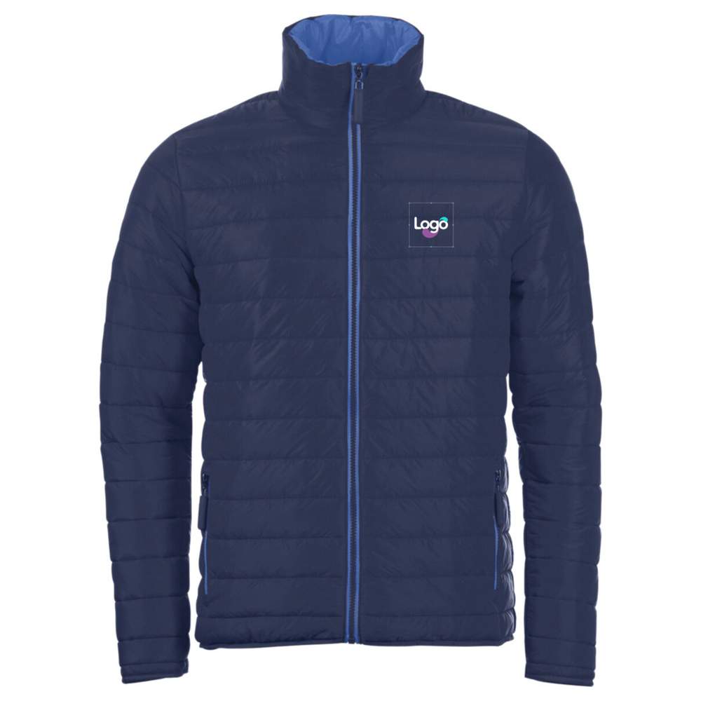 The Ride men down jacket from SOL'S is an ideal garment for outdoor activities. Made from 100% nylon for the exterior and lining, with a 100% polyester padding, it offers warmth and lightness. It features two zippered pockets matching the lining and an adjustable high collar. The sleeve and bottom finishes are done with tone-on-tone bias binding. This model can be customized through embroidery to display your logo or design.
