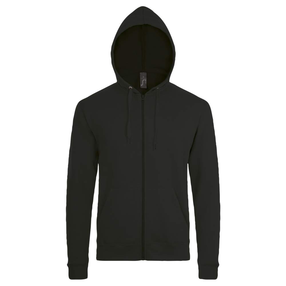 Unisex zip-up hooded jacket. Straight fit. Set-in sleeves. Two kangaroo pockets. Hood with drawstring in matching color. Stitched construction. Brushed fleece.