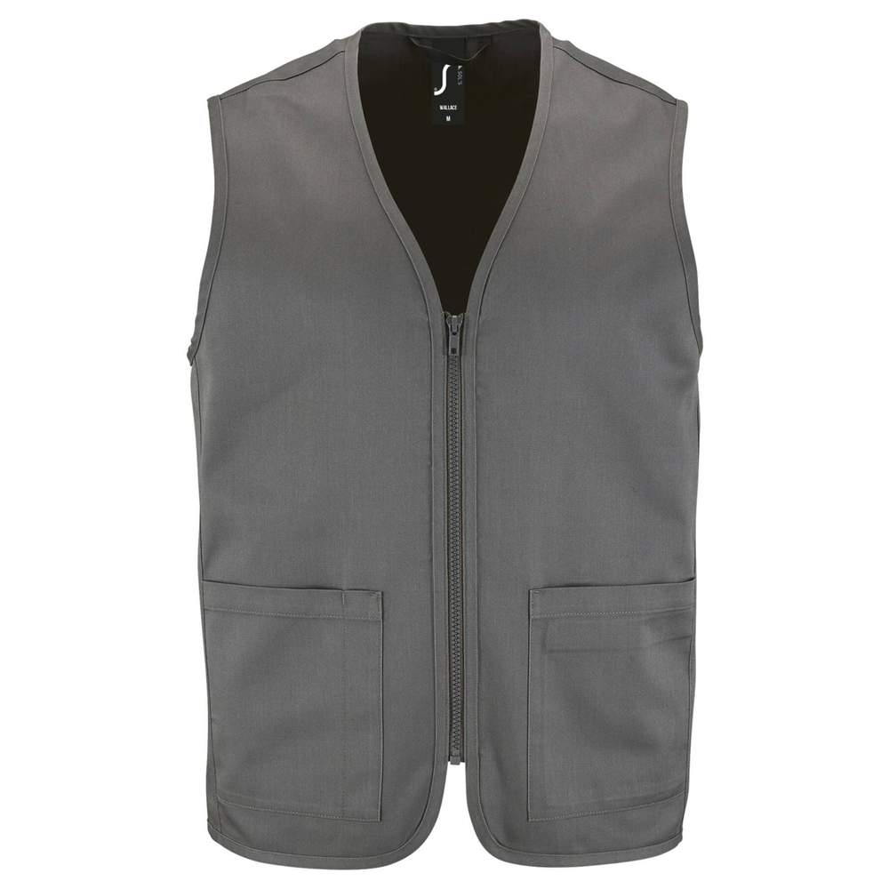 Unisex bodywarmer in twill 65% polyester and 35% cotton. Classic fit with front zip opening. This gilet features two practical front pockets, one of which includes a pen compartment. An inner pocket provides additional storage space.