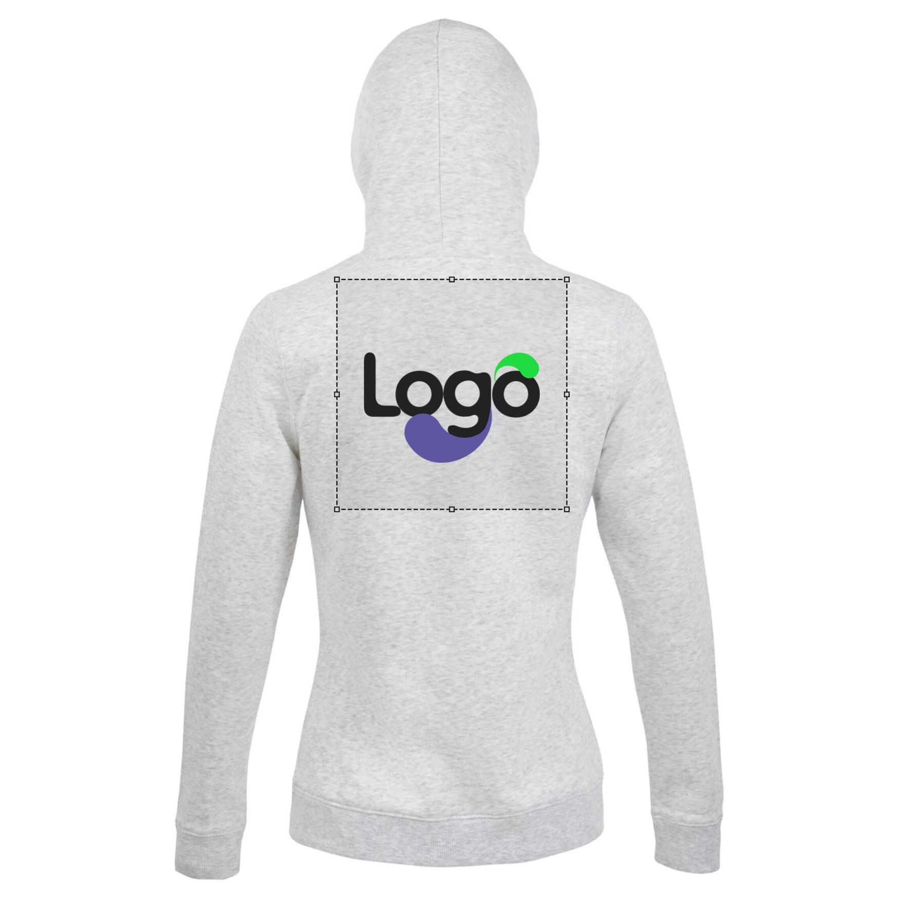 Women's hooded sweatshirt SOL'S Spencer women, sewn fit with kangaroo pocket. Hood lined with drawstring for optimal adjustment. Cuffs and hem in 2x2 ribbed edge for more comfort. Half-moon inside the collar and inner clean band for perfect hold. Composition: 80% Ringspun cotton - 20% polyester. Brushed interior for increased softness. Exterior 100% cotton. This sweatshirt is ideal for customization with embroidery or printing your logo.