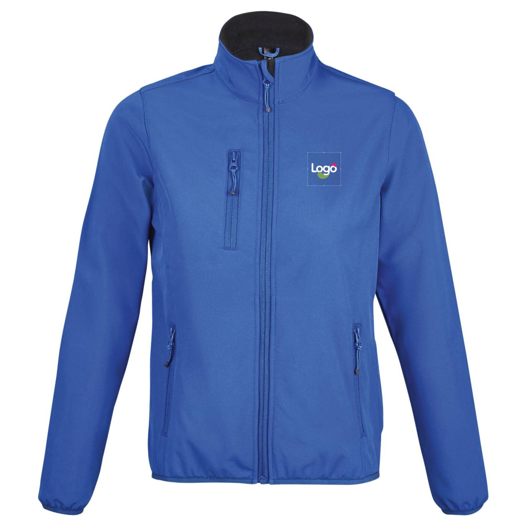 Women's zip-up softshell jacket. Zip opening. 2 side pockets and 1 zippered chest pocket, elastic bias finishes on cuffs and bottom of garment. 96% polyester - 4% elastane. 3 layers. 100% polyester fleece interior. This garment offers the possibility of customization, in particular by embroidery, for the addition of your logo or any other visual.