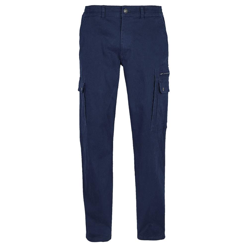 Stretch pants for men. This model features a zipper and a metal button. It has an elasticated waist with reinforced belt loops. It has 2 Italian side pockets, as well as a zippered patch pocket on the left leg and 2 side patch pockets with flap and snap buttons. It also includes 2 piped back pockets with buttonholes, and 1 ticket pocket. Its cut is modern. Composition: 98% cotton - 2% elastane. Cut: Modern. Pockets: Multiple functional pockets.