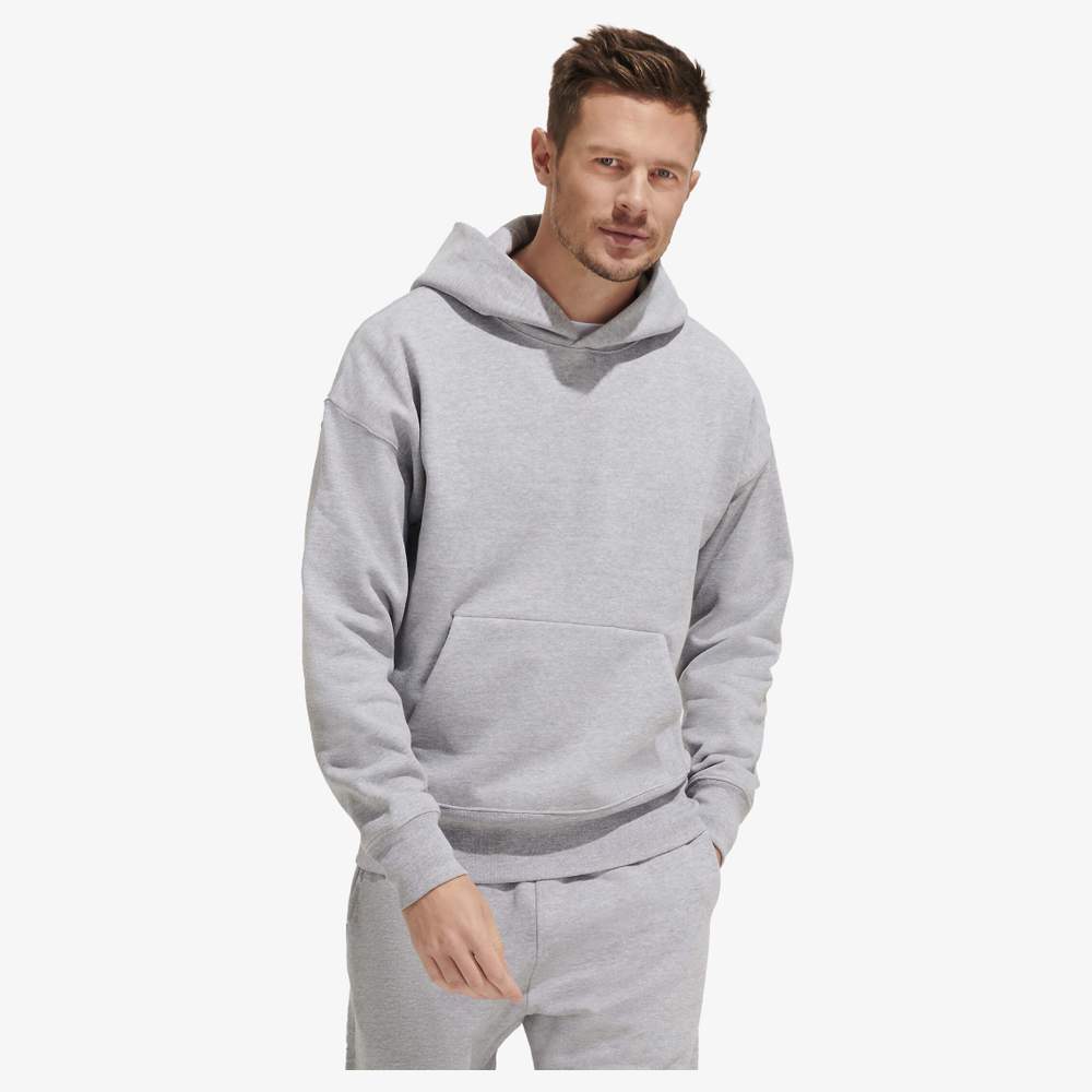 This unisex Origin SOL'S hooded sweatshirt offers optimal comfort with its oversized cut and dropped shoulder sleeves. It features ribbed cuffs and hem, side gussets in ribbing, and a practical kangaroo pocket. The main material-lined hood ensures added comfort. The inner neck tape and reinforced stitching enhance the product's quality. Its composition of 80% cotton and 20% recycled polyester 3T (except for the Heather Gray color: 73% cotton, 20% recycled cotton, 7% viscose) makes it a responsible choice. This sweatshirt is perfect for customization with embroidery or printing of your logo, for a unique and personalized look.