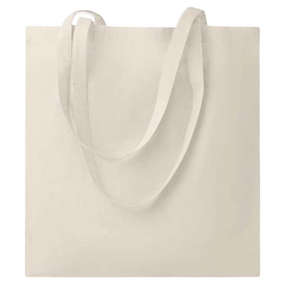 Shopping bag with long straps and reinforced seams. Made of 100% cotton, this bag offers a practical and durable solution for carrying your belongings. Its reinforced seams ensure increased resistance to daily use. Perfect for grocery shopping, promotional events or personal use.