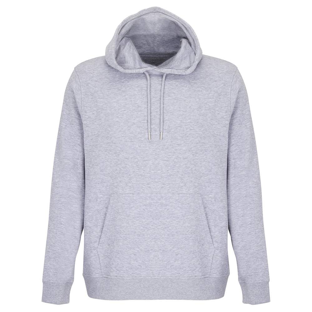 Unisex hooded sweatshirt. Sewn fit. Set-in sleeves. Cuffs and hem in ribbed 2x2. Kangaroo pocket. Half-moon and neckband in jersey. Lined hood in jersey. Drawstring with eyelet and metal tip. Composition: 85% organic combed cotton, in conversion, 15% recycled polyester; 3 threads; Inside not brushed; Outside 100% organic cotton, in conversion.
