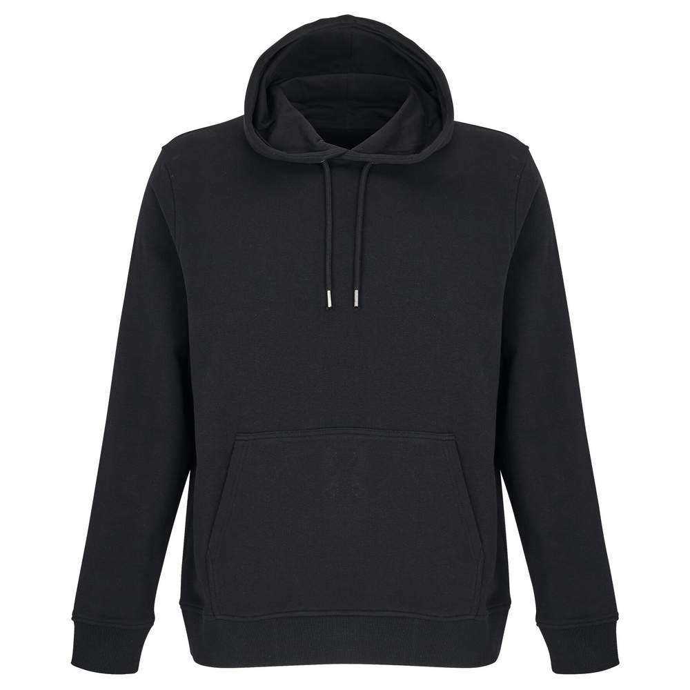 Unisex hooded sweatshirt. Sewn fit. Set-in sleeves. Cuffs and hem in ribbed 2x2. Kangaroo pocket. Half-moon and neckband in jersey. Lined hood in jersey. Drawstring with eyelet and metal tip. Composition: 85% organic combed cotton, in conversion, 15% recycled polyester; 3 threads; Inside not brushed; Outside 100% organic cotton, in conversion.