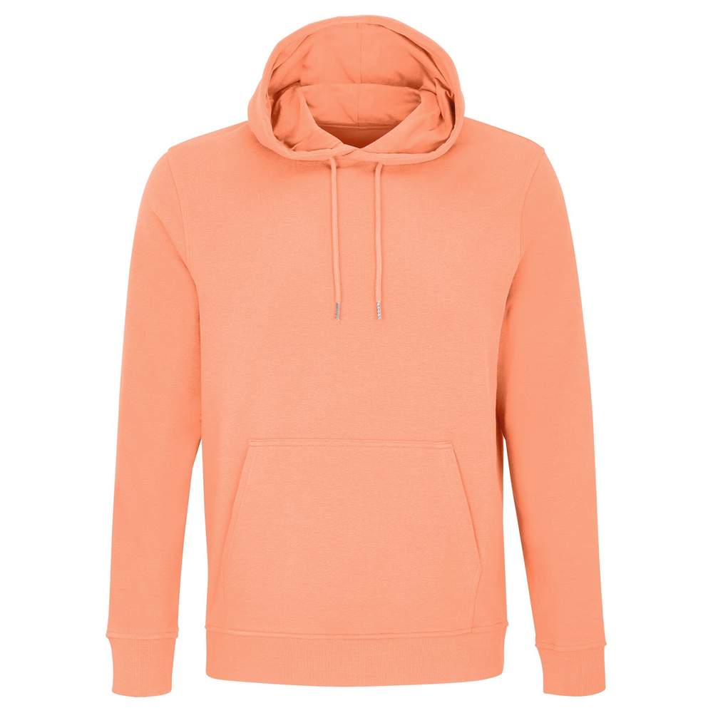 Unisex hooded sweatshirt. Sewn fit. Set-in sleeves. Cuffs and hem in ribbed 2x2. Kangaroo pocket. Half-moon and neckband in jersey. Lined hood in jersey. Drawstring with eyelet and metal tip. Composition: 85% organic combed cotton, in conversion, 15% recycled polyester; 3 threads; Inside not brushed; Outside 100% organic cotton, in conversion.