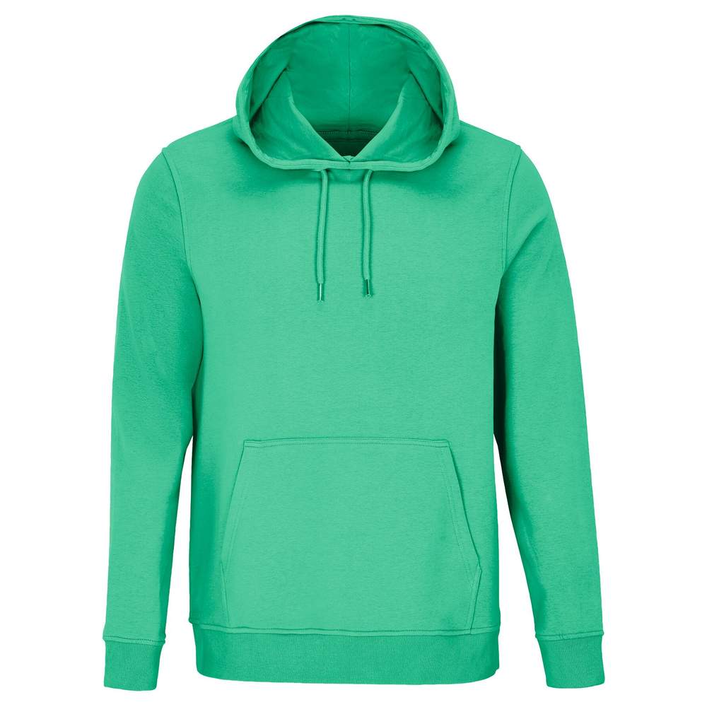 Unisex hooded sweatshirt. Sewn fit. Set-in sleeves. Cuffs and hem in ribbed 2x2. Kangaroo pocket. Half-moon and neckband in jersey. Lined hood in jersey. Drawstring with eyelet and metal tip. Composition: 85% organic combed cotton, in conversion, 15% recycled polyester; 3 threads; Inside not brushed; Outside 100% organic cotton, in conversion.