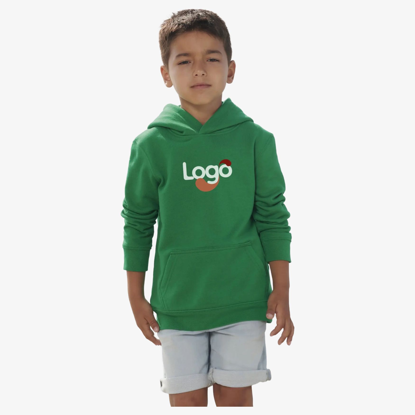 Kids hooded sweatshirt. Set-in sleeves. Cut and sewn. Ribbed cuffs and hem. Kangaroo pocket. Lined hood. Half-moon and neckband in jersey at the neckline. Relaxed fit. This sweatshirt is ideal for customization by embroidery or printing, allowing you to add your logo or visual for effective communication. Composition: 80% cotton, 20% recycled polyester. Heather gray 73% cotton, 20% recycled polyester, 7% viscose.