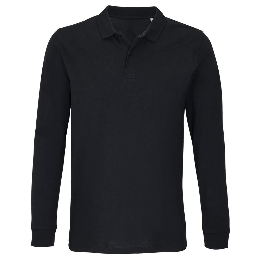 Unisex long sleeve polo. Ribbed collar with neckband. Reinforced flap with two tone-on-tone buttons. Long sleeves with 1x1 ribbed cuffs. Tailored fit. Spare button on inner seam side.