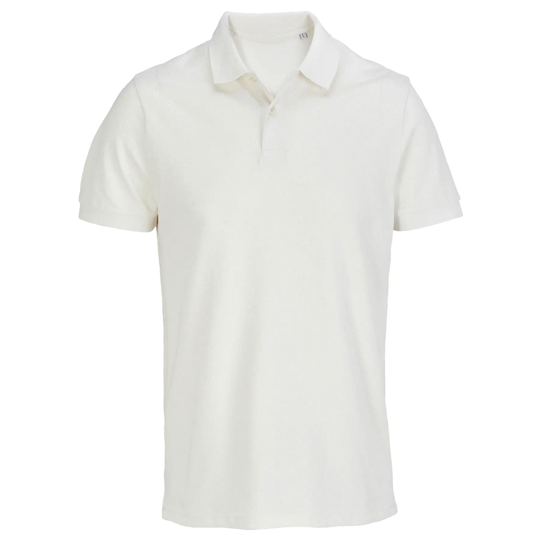 The unisex polo features a comfortable fit with short sleeves and a low ribbed collar containing elastane. It is cut sewn with a collar tape and a reinforced button placket with two off-white buttons. The hem is straight with reinforced side vents and a spare button is placed on the inner side seam. The composition is 100% Ringspun combed cotton, except for the heather grey color which is 85% cotton and 15% viscose.