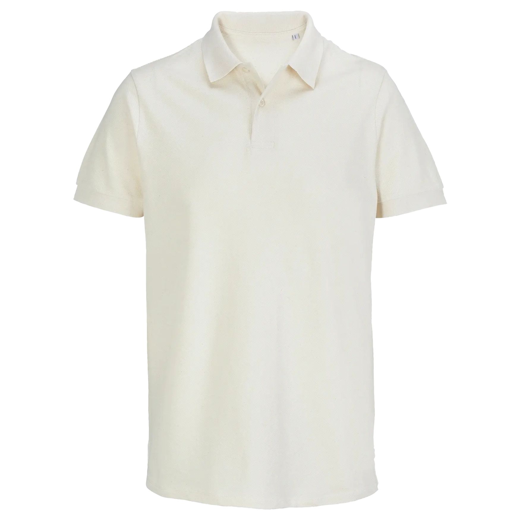 The unisex polo features a comfortable fit with short sleeves and a low ribbed collar containing elastane. It is cut sewn with a collar tape and a reinforced button placket with two off-white buttons. The hem is straight with reinforced side vents and a spare button is placed on the inner side seam. The composition is 100% Ringspun combed cotton, except for the heather grey color which is 85% cotton and 15% viscose.