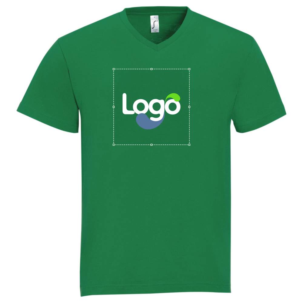 This men's T-shirt features a classic fit and a V-neck. It is made of jersey 150, 100% semi-combed cotton, offering optimal comfort. The neck tape and the four layers of ribbed edge ensure lasting durability. This tubular model is ideal for easy and high-quality customization.