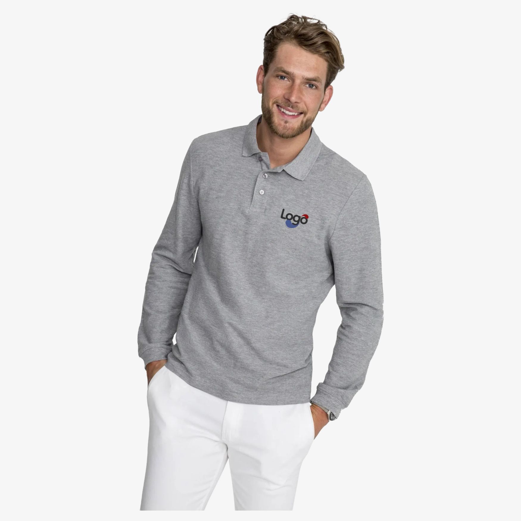 Polo man long sleeves in knitted fabric, composed of 100% combed cotton. It has a collar and cuffs in ribbing for optimal comfort. A neckband is present at the collar and a reinforced buttoned tab ensures durable holding. This classic polo has a sewn fit and a straight bottom with side slits. An extra button is included on the context label. The heather colors are composed of cotton and polyester. This polo is ideal for customization with embroidery, allowing you to add your logo or your visual.