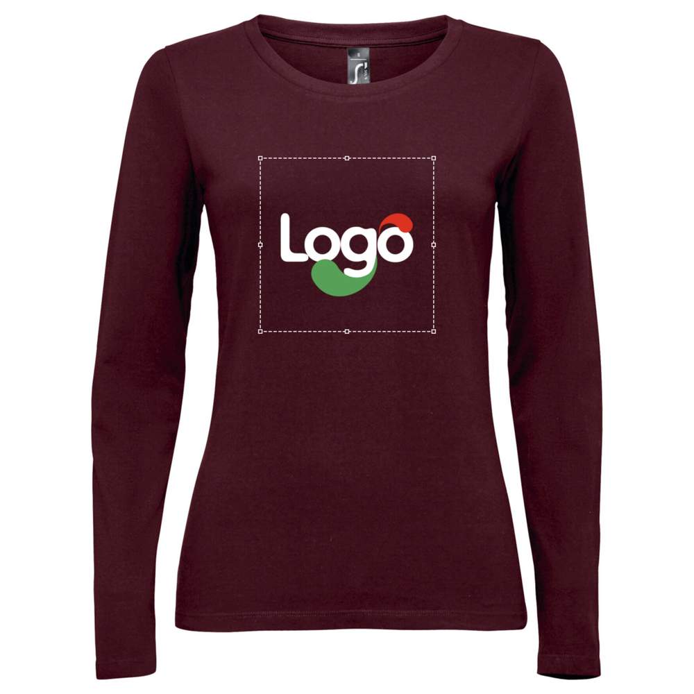 This women's round neck long-sleeved T-shirt is made of jersey, 100% combed cotton, offering optimal comfort and excellent durability. It features a neckband at the collar and a round elasticated ribbed collar for perfect hold. Its classic and slightly fitted cut flatters the silhouette. This model is ideal for customization and adding your logo or design.