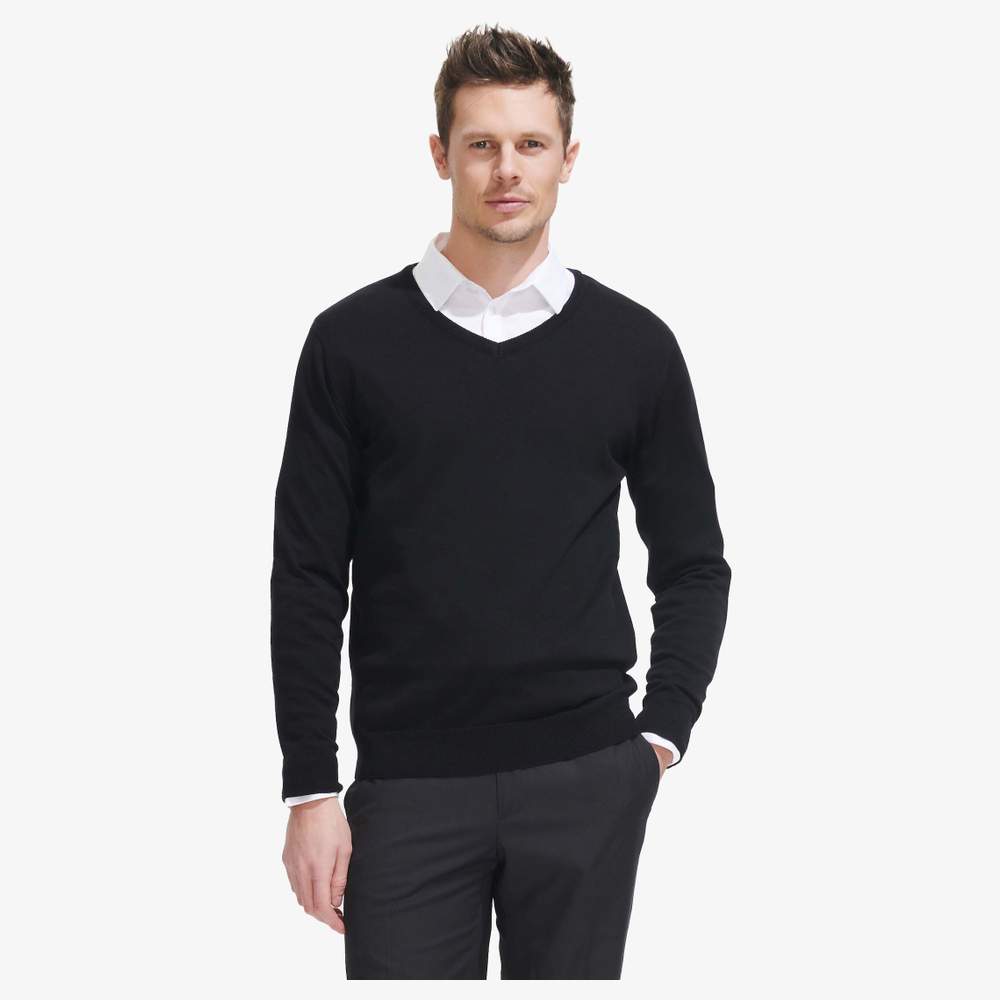 Men's Col V Pull Galaxy men. Its acrylic/cotton jersey provides warmth and comfort. Knit. Composition: Gauge 12 - 49% cotton - 49% acrylic - 2% polyamide. Set-in sleeves. Cuffs and hem with ribbing. Armholes with decreases.