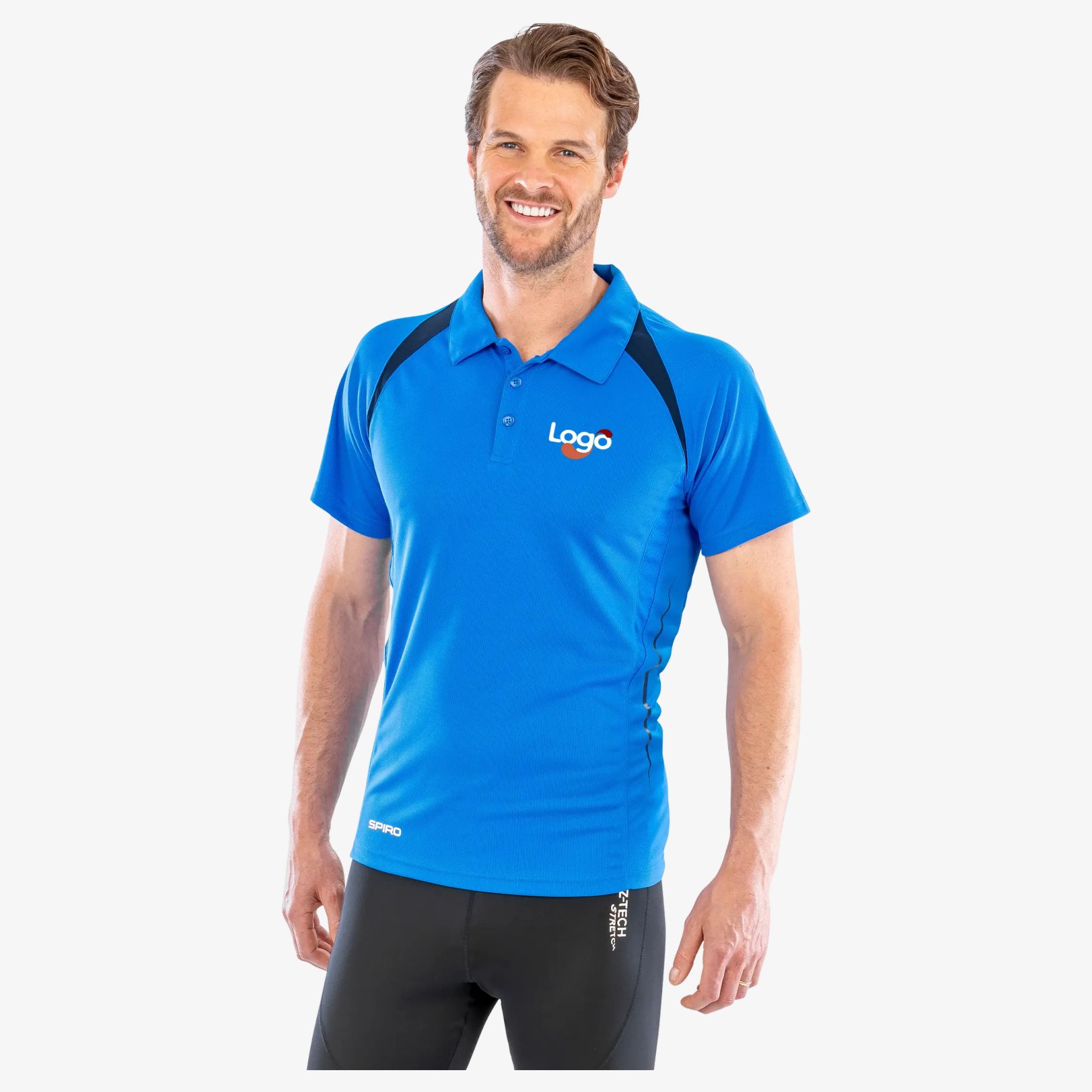 This men's sports polo is made of 100% polyester, offering optimal breathability thanks to its Cool-dry honeycomb knit mesh. It features contrasting shoulder inserts and contrasting prints on the sides for a dynamic look. With 3 tone-on-tone buttons and a comfortable fit, this polo is perfect for your sports activities. The printed SPIRO reflective logo ensures increased visibility. This polo is customizable, allowing the addition of your logo or visuals for a consistent brand image.