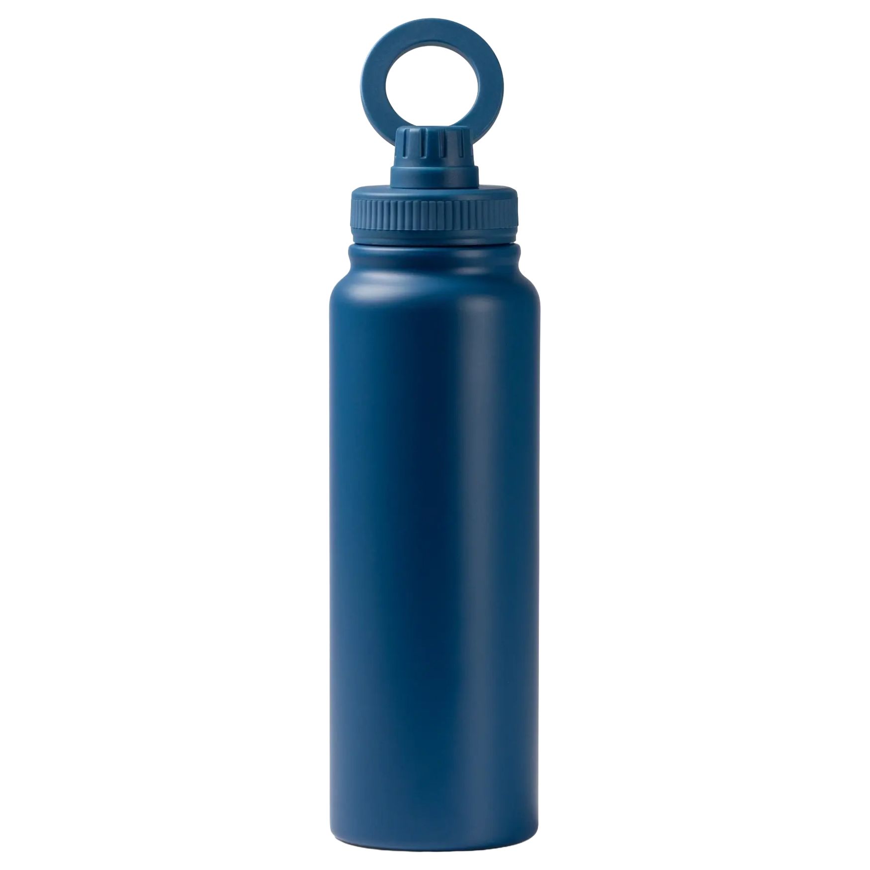 The Heyman insulated bottle in recycled double-wall 304 stainless steel with a magnetic-ring lid usable as a mobile phone stand. Base with non-slip rubber. Capacity 1 L.