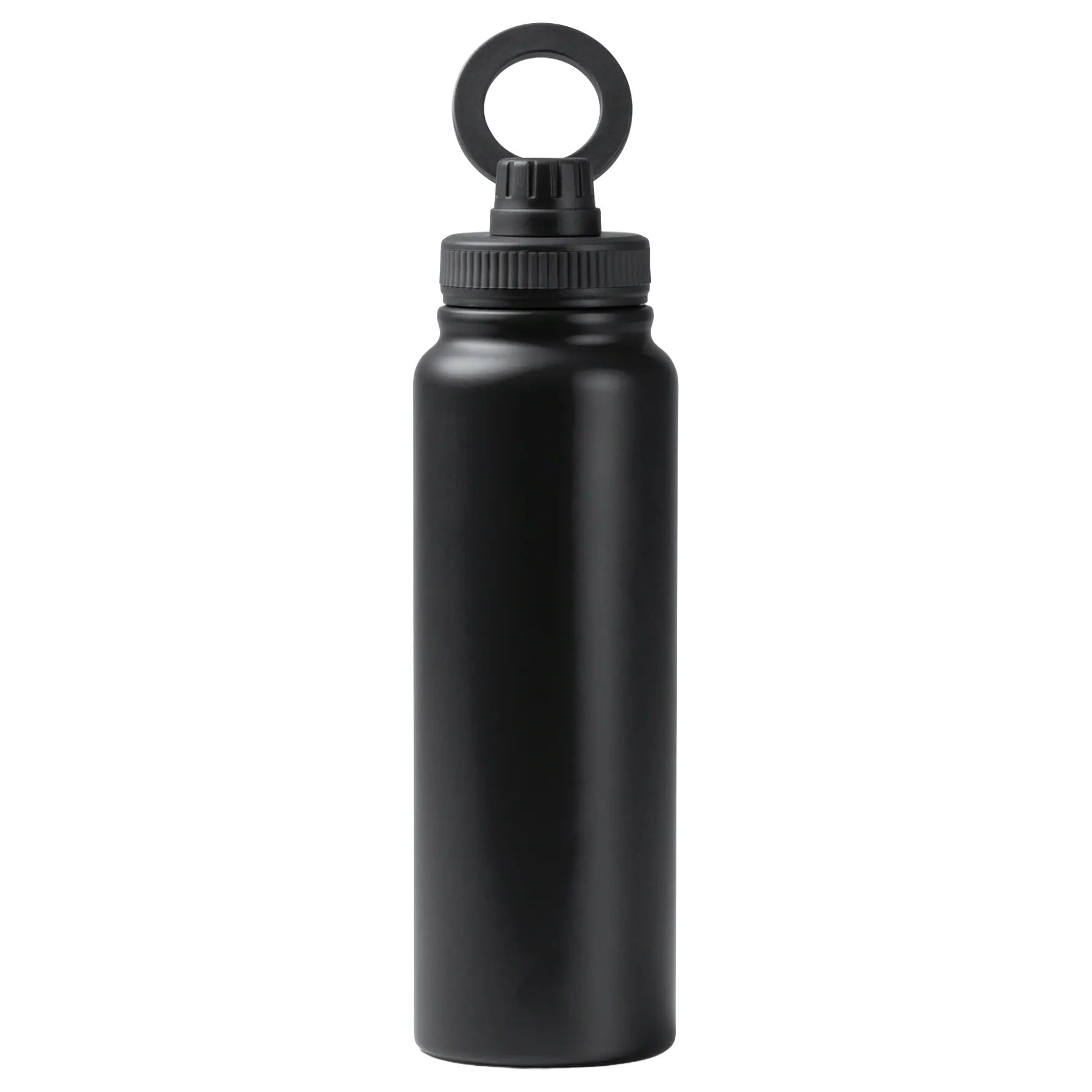 The Heyman insulated bottle in recycled double-wall 304 stainless steel with a magnetic-ring lid usable as a mobile phone stand. Base with non-slip rubber. Capacity 1 L.