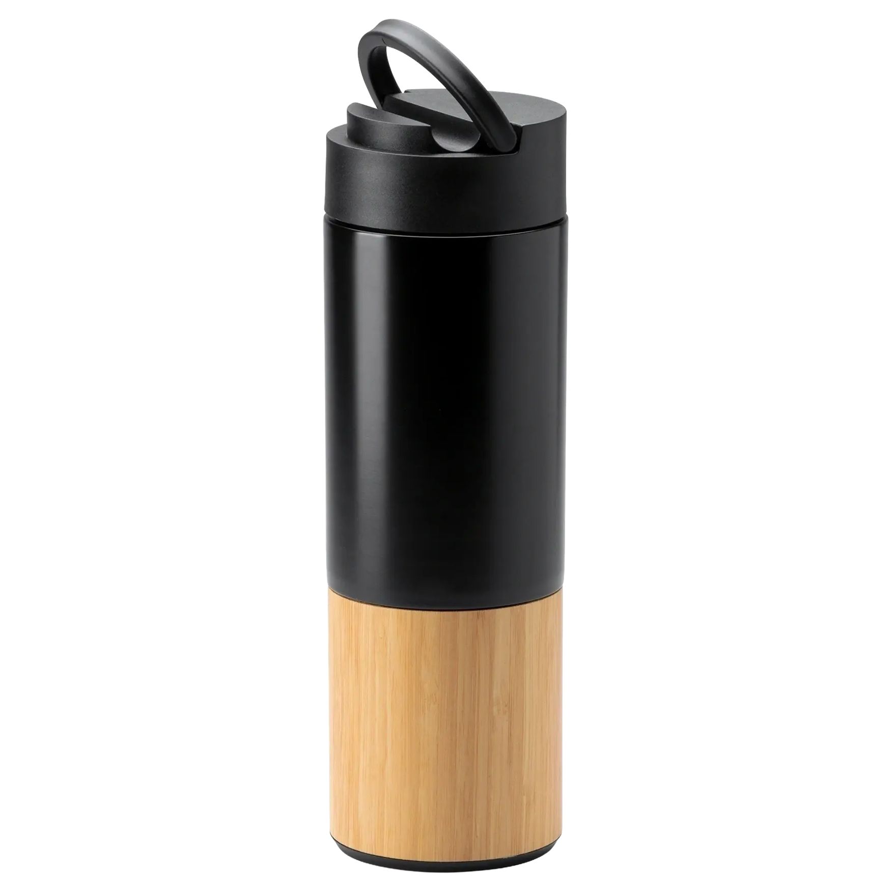 The Coiba double-wall insulated bottle in 304 stainless steel with bamboo details is suitable for carrying hot or cold drinks. The lid with handle makes gripping and carrying easier. Capacity 450 ml.