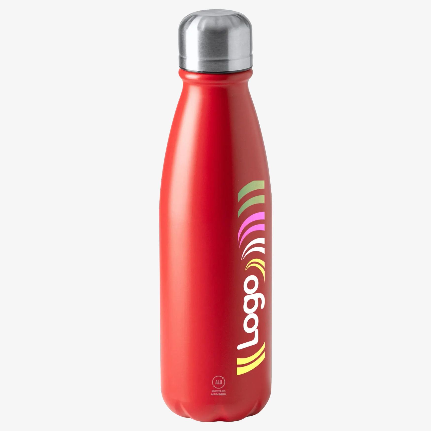 This bottle made of recycled aluminum is designed to accompany your daily life in an ecological and practical way. With a capacity of 550 ml, it is ideal for staying hydrated at all times. Its manufacture in recycled aluminum testifies to a commitment to sustainable development. This bottle is also customizable, allowing you to add your logo, a message or a visual for effective and original communication.