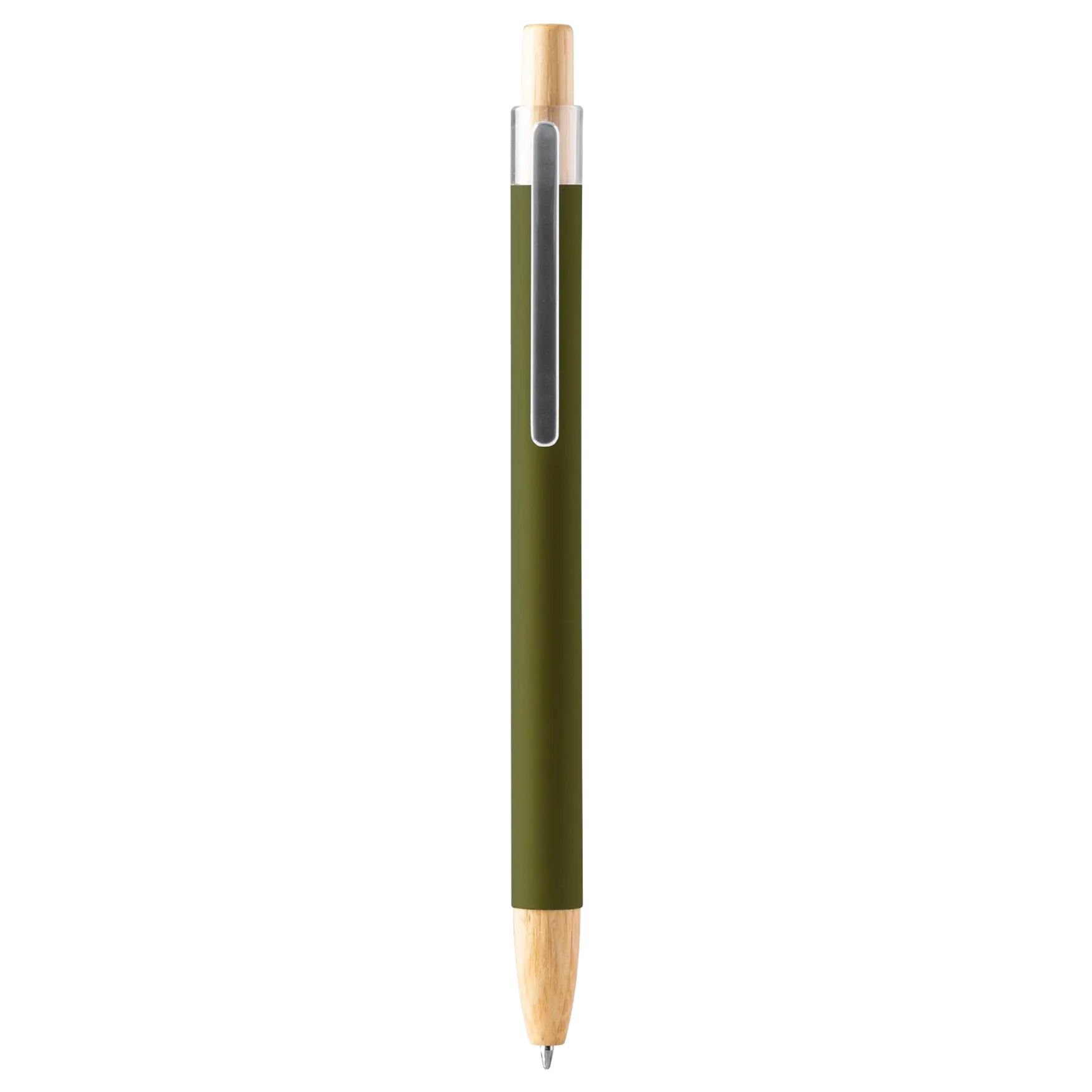 Ballpoint pen with soft metal structure and bamboo details. Blue ink. Dimensions: length 14,2cm, diameter 1cm. Composition: metal, bamboo.
