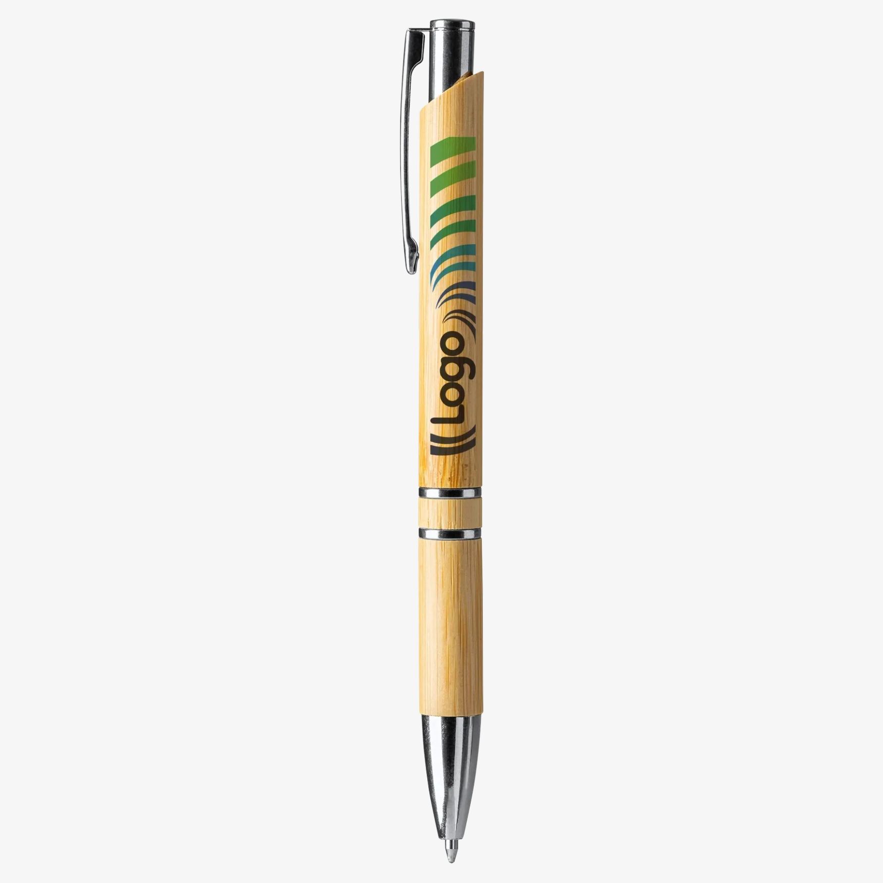 This pen combines the natural aesthetics of bamboo with the durability of metal. Its bamboo body offers a comfortable grip and an ecological look. It is equipped with a giant blue ink refill, ensuring long-lasting use. This pen is ideal for daily use, in the office or as a corporate gift. It is possible to customize this pen with your logo or a message of your choice, making it an excellent communication tool for your brand.
