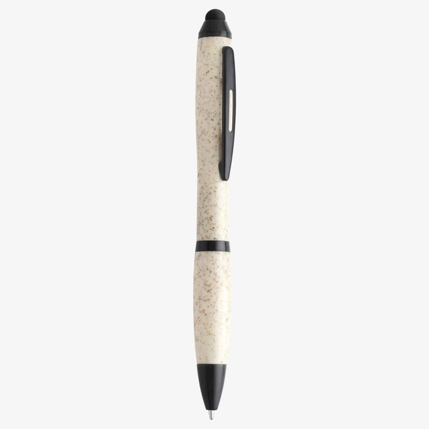 Rotating pen in wheat fiber and polypropylene with black finishes. Blue ink. Composition: wheat fiber and ABS.
