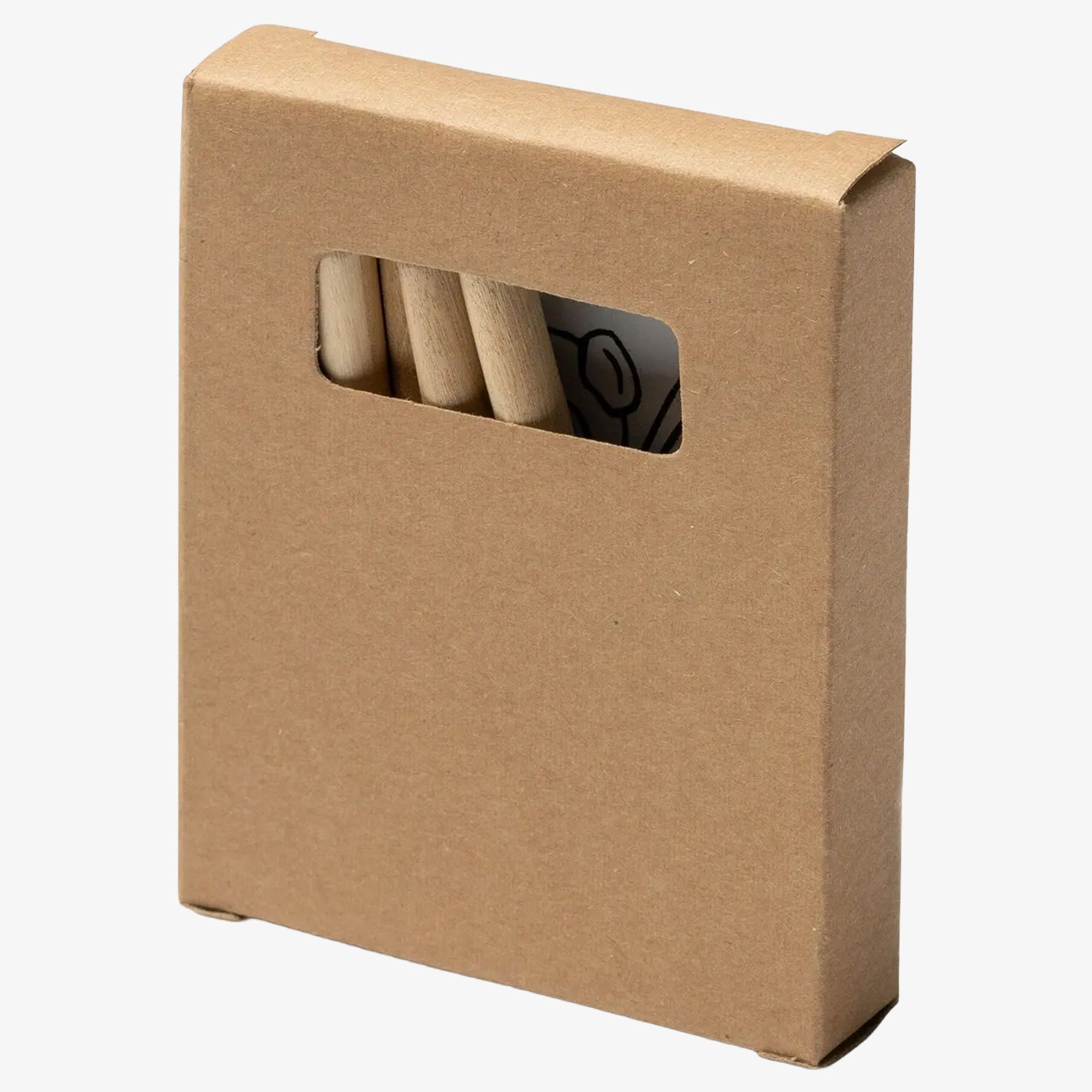 This children's coloring set offers a creative and fun activity. It includes a sketchbook, six colored pencils, and a pencil sharpener, allowing children to develop their imagination and artistic expression. The set is presented in a recycled cardboard box, thus promoting an eco-friendly approach.