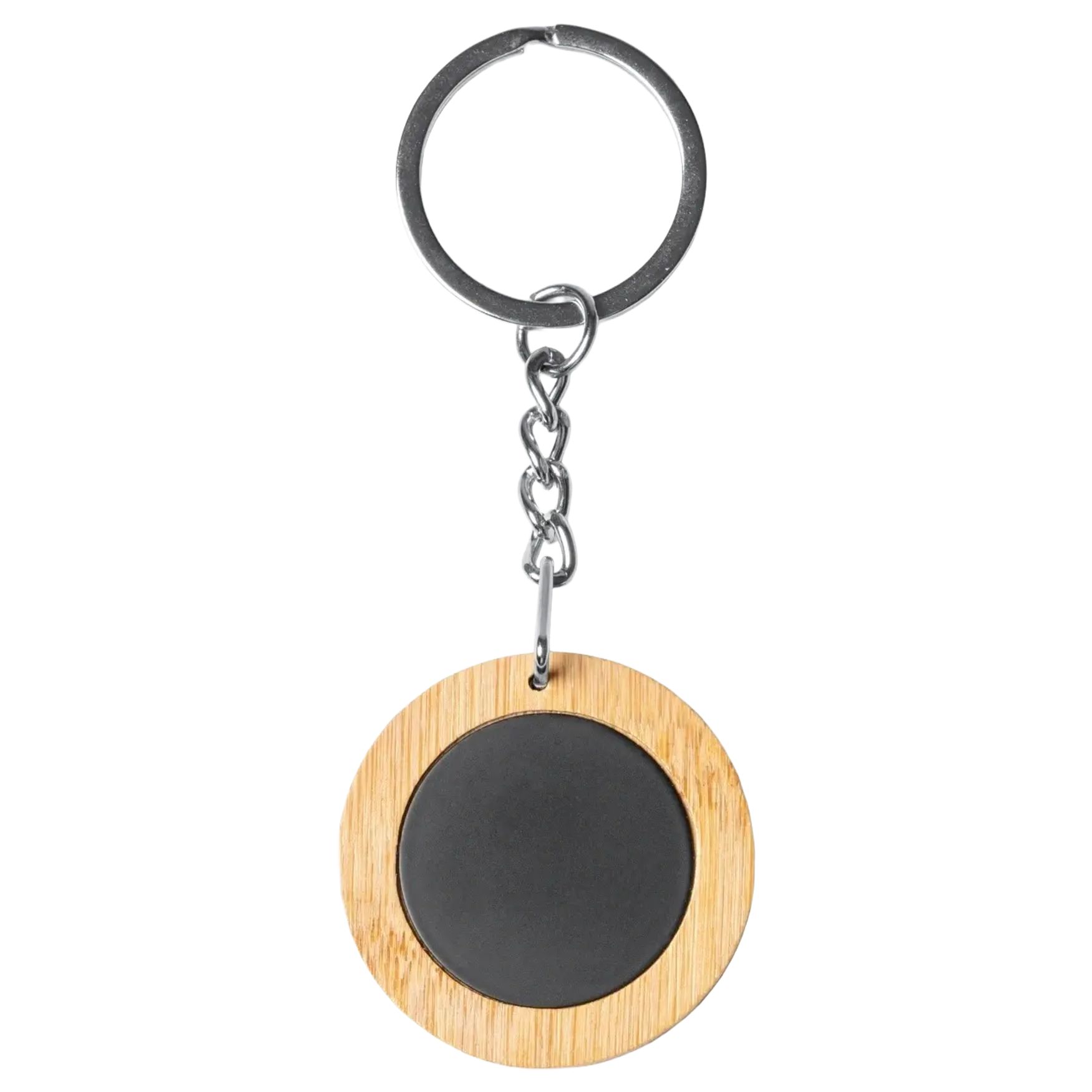 The round bamboo and steel keychain combines a natural material with a metal element for regular use. Its design combines lightness and strength.