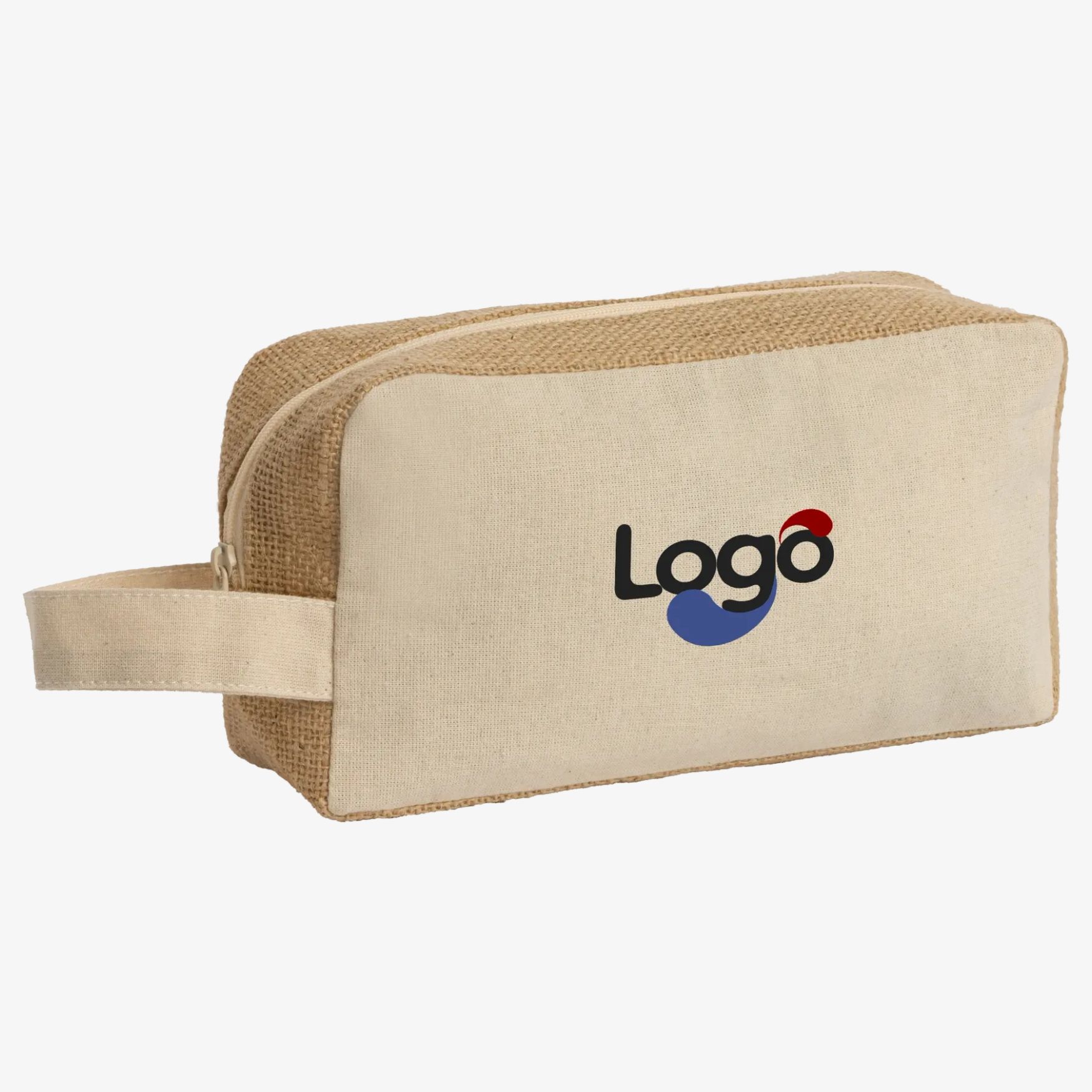 The SIENA pouch in laminated cotton jute is suitable for storing personal items. It features a zip closure with matching pull. The composition combines cotton and jute. Dimensions are 21 x 11 x 6 cm.
