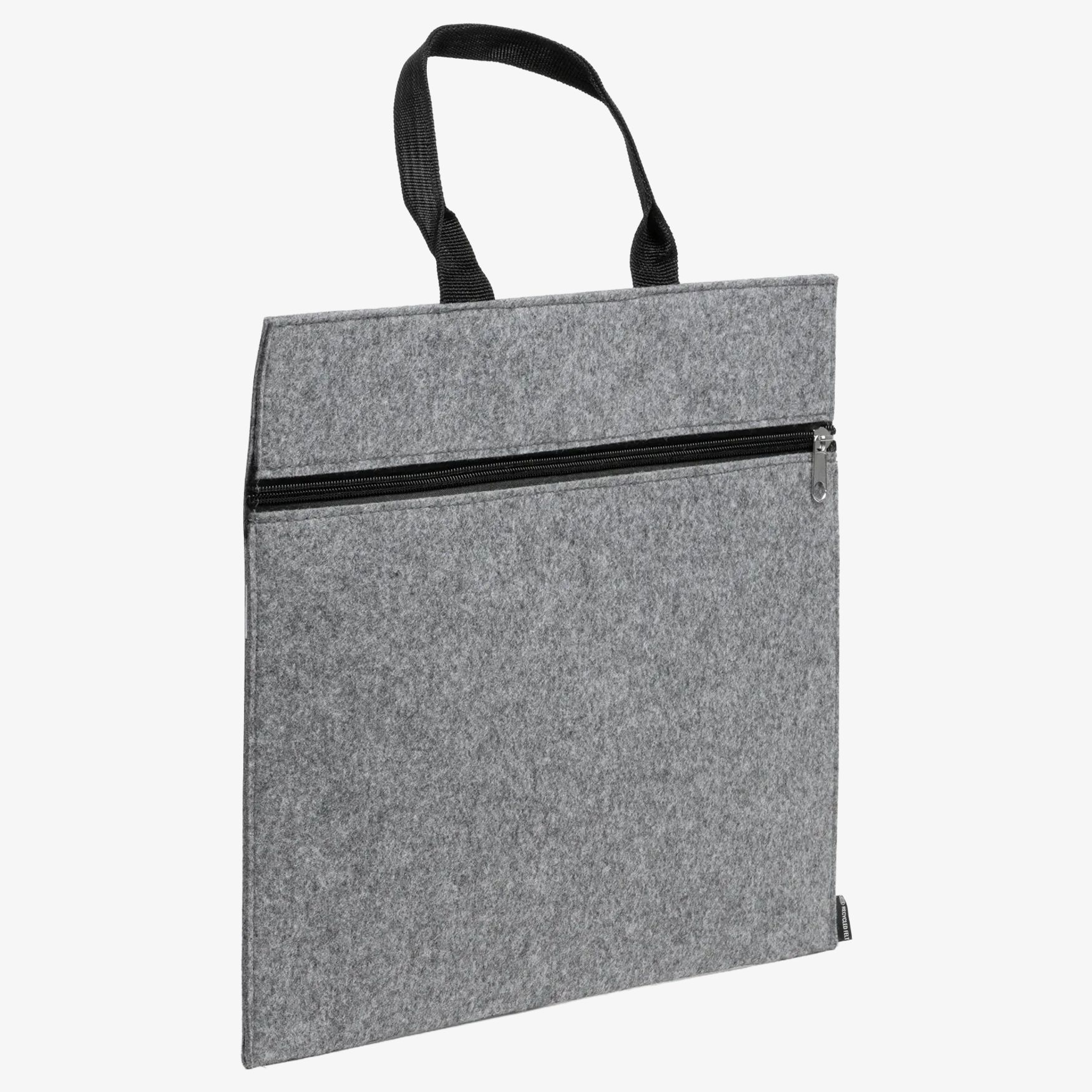 The SONA recycled felt document holder features a recycled felt structure with a mottled design. It includes a large zipped compartment that allows documents and tablet to be stored and transported securely.