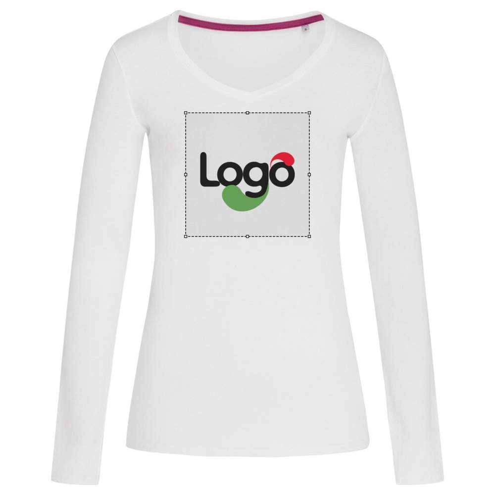 Long Sleeve Claire v-neck Customization T-Shirt st9720 - White