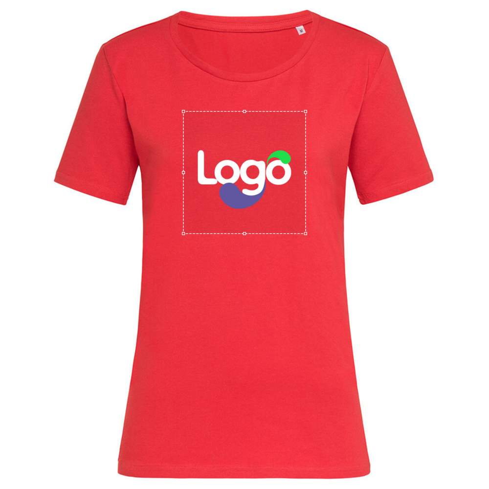 Comfort-fit women's t-shirt made of a soft blend of cotton and elastane. Elastic peached cotton with elastane, no brand tag in the neck. Simple 'full feeder' jersey, reinforced shoulder seams, fine collar in the same material, clean band, side seams, small size tag in the neck, care label in the side seam. Composition: 95% ring-spun combed cotton, 5% elastane; simple 'full feeder' jersey (GYH: 82% cotton, 14% viscose, 4% elastane).